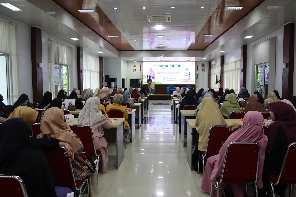 Kegiatan yang digelar di Aula HI Universitas Muhammadiyah Metro ini menghadirkan dua narasumber, yakni Rizda Nirmala Sari (owner Fathah & Metro Garmen) dan Dian Dwi Agustin (owner Sambel Alu & Rokez). Acara diikuti oleh 100 peserta.