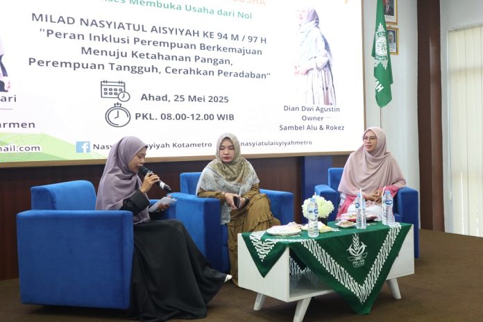 METRO-Dalam rangka menyemarakkan Milad ke-94 Masehi / 97 Hijriah Nasyiatul Aisyiyah, Pimpinan Daerah Nasyiatul Aisyiyah (PDNA) Kota Metro sukses menyelenggarakan Seminar Bisnis bertajuk “Berani Kaya, Berani Jadi Pengusaha: Kunci Sukses Membuka Usaha Dimulai dari Nol” pada Minggu, 25 Mei 2025.