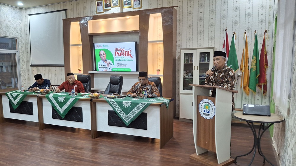 Lembaga Hikmah dan Kebijakan Publik (LHKP) Pimpinan Daerah Muhammadiyah Kota Metro, Kamis, 29/05/2025 mengadakan Dialog Publik bersama dengan Ketua Pimpinan Pusat Muhammadiyah Busro Muqaddas yang biasa dikenal dengan panggilan Pak BM. Bertempat di Aula SMK Muhammadiyah 1 Metro, dengan topik yang diangkat tidak jauh-jauh dari persoalan Penegakan Hukum dan Kebijakan Publik.
