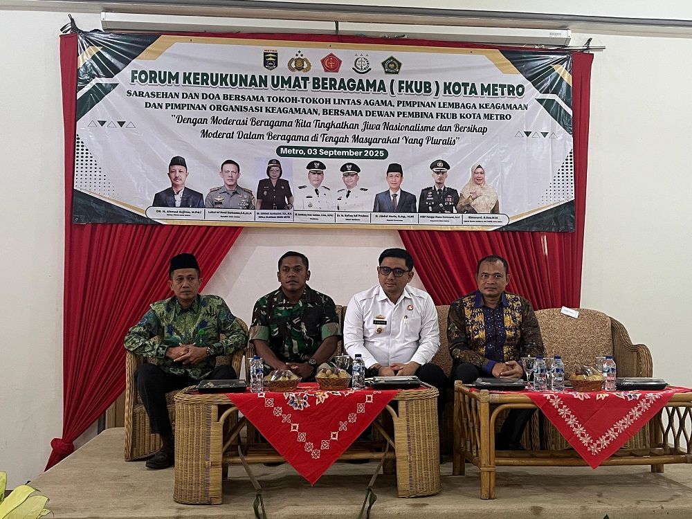 Acara dibuka oleh Wakil Wali Kota Metro dan dihadiri unsur Kementerian Agama, Polres Metro, Kejaksaan Negeri Metro, serta tokoh lintas agama dan elemen masyarakat. Dalam kesempatan tersebut, seluruh peserta secara aklamasi menyatakan komitmen untuk mempererat persaudaraan demi menjaga Kota Metro agar tetap aman dan damai di tengah dinamika masyarakat yang beragam.