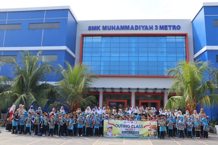 METRO-Suasana keceriaan tampak pada pagi ketika 155 siswa kelas 1 Madrasah Ibtidaiyah Muhammadiyah (MIM) Hadimulyo Metro mengikuti kegiatan Outing Class bertema “Menumbuhkan Kreativitas dan Kemandirian Anak (Fun Exploration of Soap and Donut Production)” di SMK Muhammadiyah 3 Metro. pada Sabtu (11/10/2025).