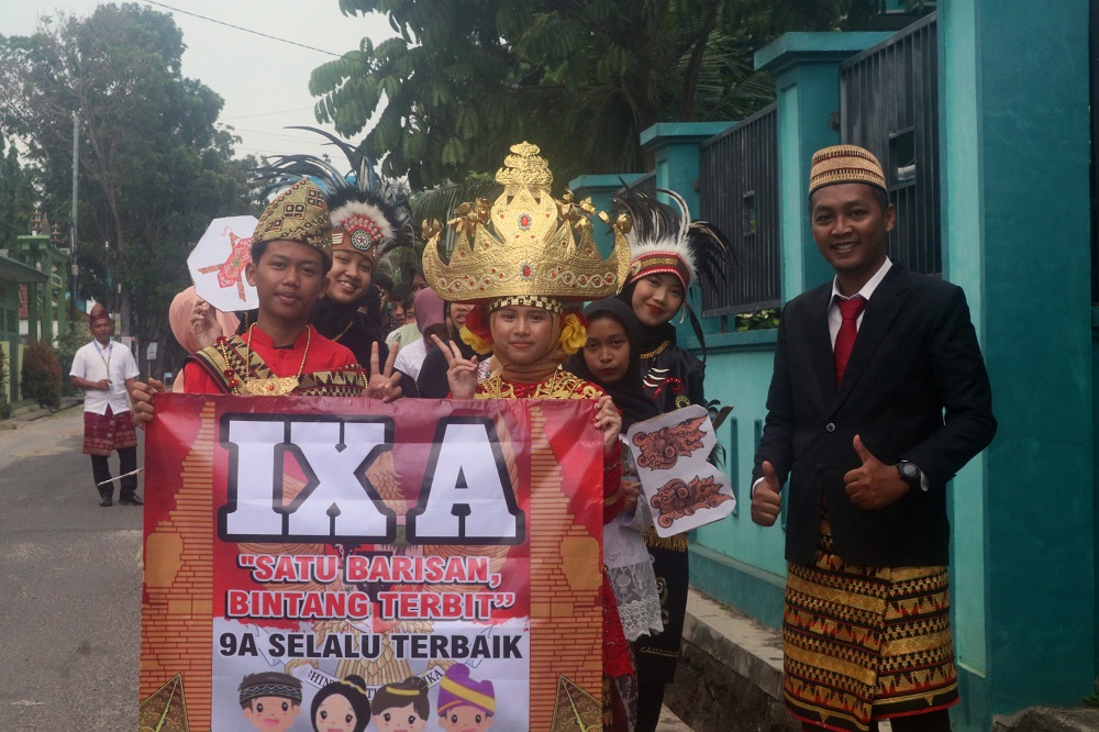 Masyarakat sekitar tampak menyambut hangat rombongan siswa yang melintas sambil menyuarakan yel-yel sebagai simbol semangat persatuan pemuda Indonesia. Kegiatan berjalan lancar dan penuh antusiasme hingga pembagian hadiah juara pawai dan fashion show yang diserahkan oleh kepala sekolah. (gw)