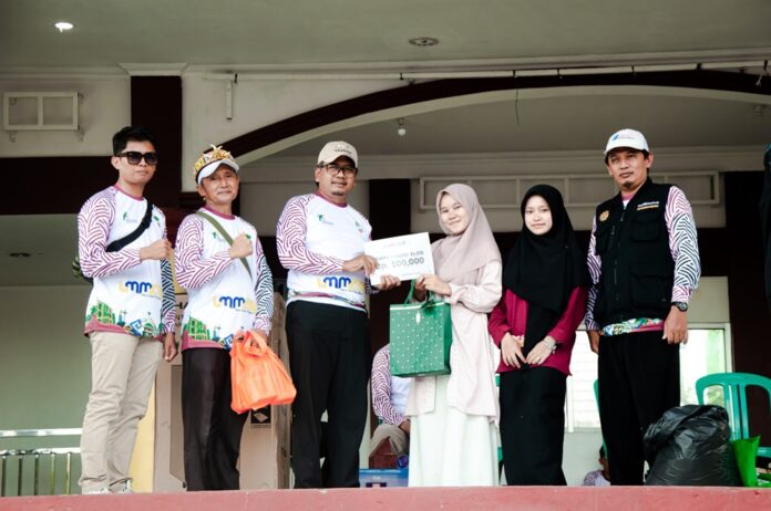 Hadiah berupa uang pembinaan, piagam penghargaan, dan merchandise diserahkan oleh Dr. Mukhtar Hadi, M.Si., didampingi Ketua MPI PDM Kota Metro, di panggung pembagian doorprize peserta pawai di Samber Park, Jumat (28/11/2025).