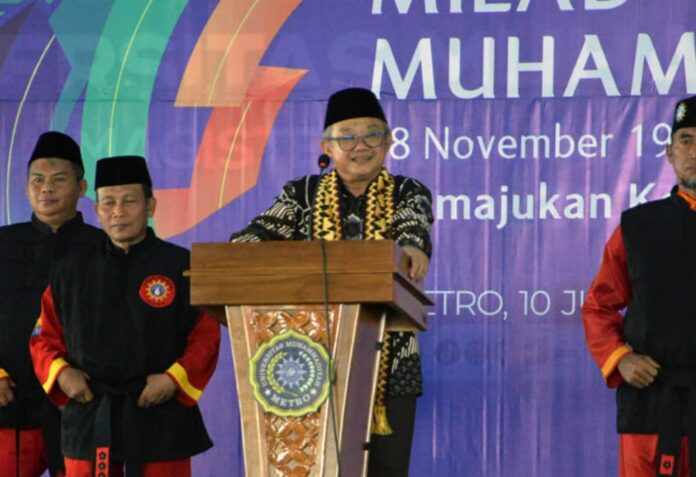 Rektor Universitas Muhammadiyah Metro, Dr. Syoto Suseno, M.Si., dalam sambutannya menyampaikan bahwa UM Metro kini berusia 59 tahun dan telah meluluskan lebih dari 22.600 alumni. Saat ini UM Metro memiliki 36 program studi, telah membuka Fakultas Kedokteran, menyelenggarakan PPG dan RPL, menyiapkan Smart Home Class untuk mendukung digitalisasi sekolah, serta memproses pendirian Fakultas Kedokteran Hewan. Ia menyampaikan terima kasih atas amanah PWM Lampung menjadikan UM Metro sebagai tuan rumah Milad ke-113.