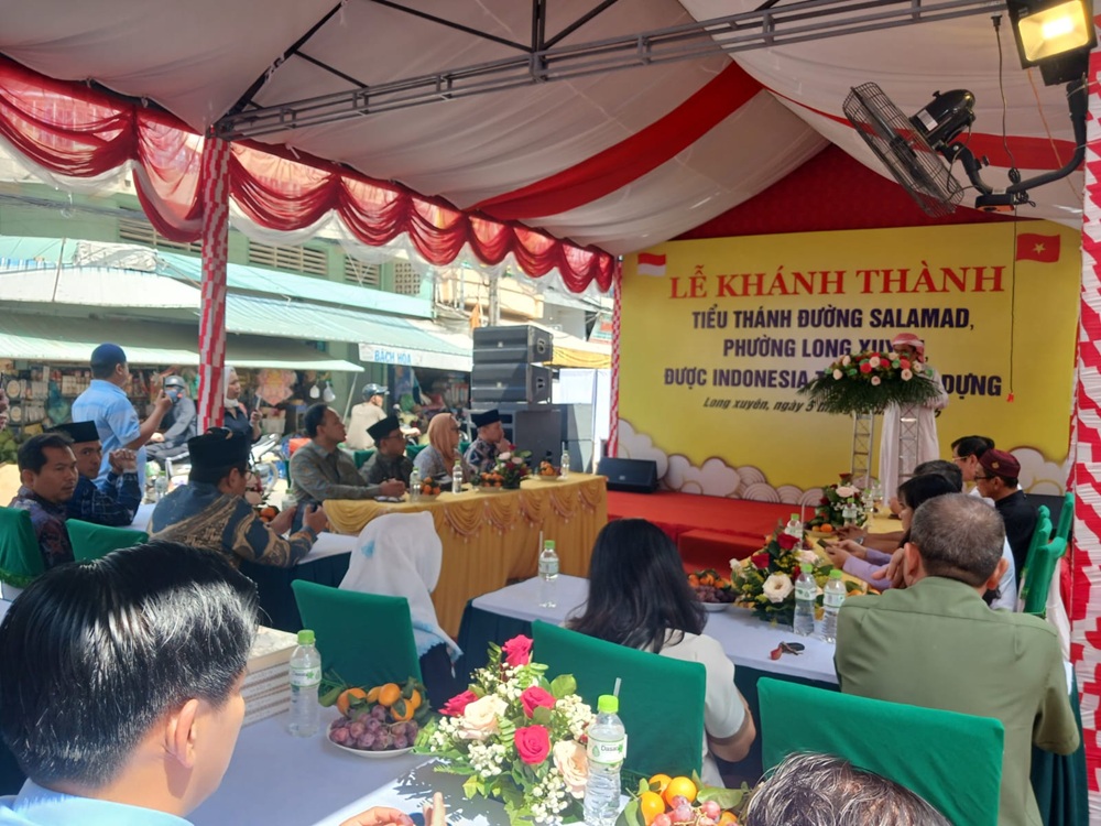 VIETNAM-Peresmian Masjid Salamad di Long Xuyen, provinsi An Giang, Vietnam Selatan oleh Kementerian Koordinator Bidang Pembangunan Manusia dan Kebudayaan yang wakili oleh Warsito Deputi Bidang Koordinasi Penguatan Karakter dan Jati Diri Bangsa, dan bersinergi dengan KBRI Hanoy, KJRI Ho Chi Minh serta lembaga filantropi di Indonesia pada Jumat, (5/12/2025), menjadi bukti peran penting harmonisasi agama ke dunia internasional.