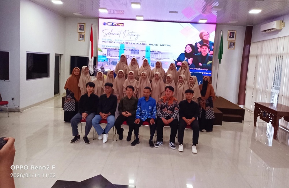 METRO-Santriwan dan santriwati Pondok Pesantren ‘Aisyiyah Imadul Bilad Metro melakukan kunjungan edukatif ke Kampus Profetik Universitas Muhammadiyah Metro (UM Metro), Kunjungan ini bertujuan mengenalkan dunia perguruan tinggi, khususnya perguruan tinggi Muhammadiyah, kepada para santri sejak dini, pada hari Rabu,14/1/2026.