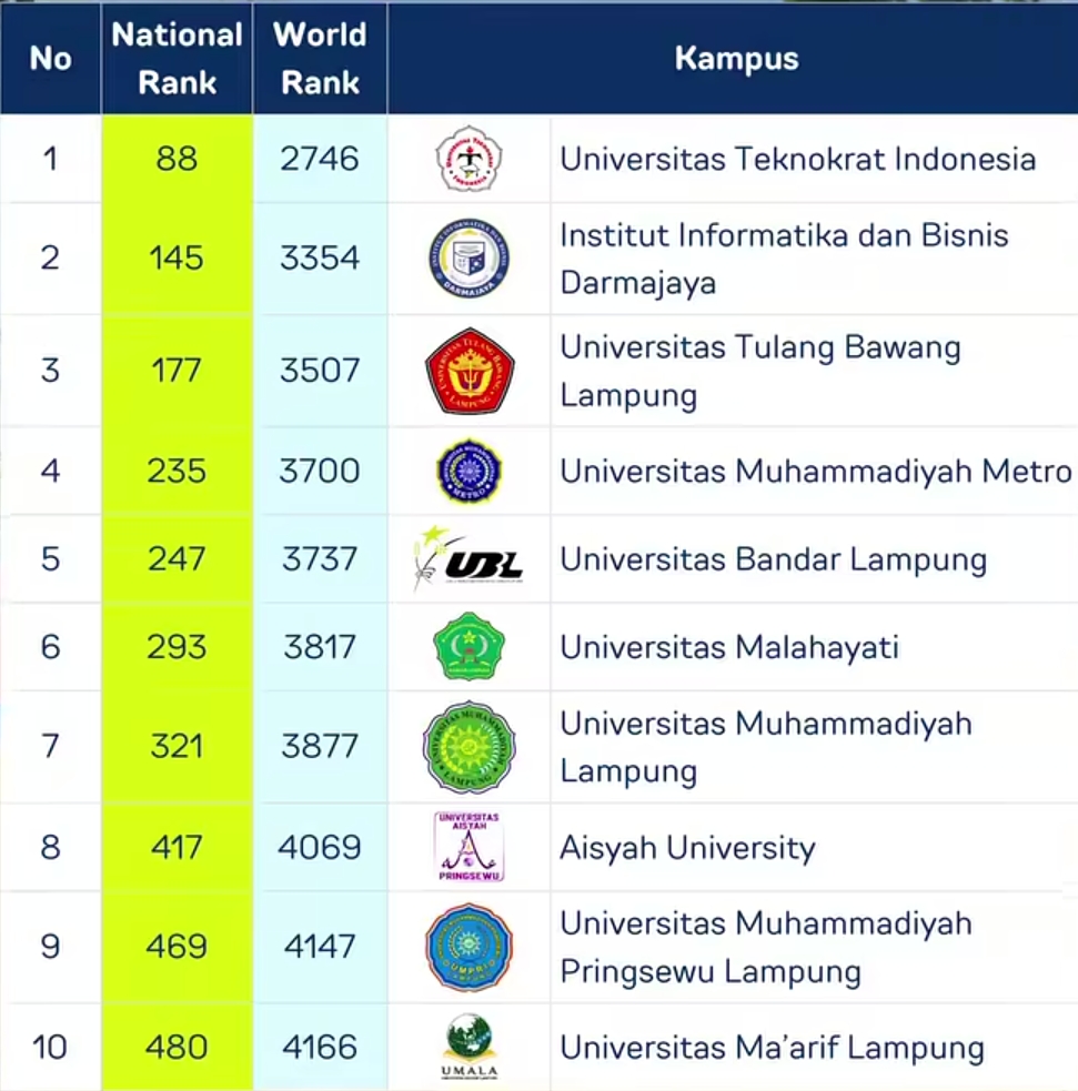 Pada pemeringkatan Webometrics Januari 2026, Universitas Muhammadiyah Metro (UM Metro) kembali menegaskan eksistensinya sebagai Kampus Profetik yang unggul dan berdaya saing global. UM Metro berhasil menempati peringkat nasional ke-235 dan peringkat dunia ke-3.700, sekaligus mengukuhkan posisinya sebagai empat besar perguruan tinggi terbaik di Provinsi Lampung.