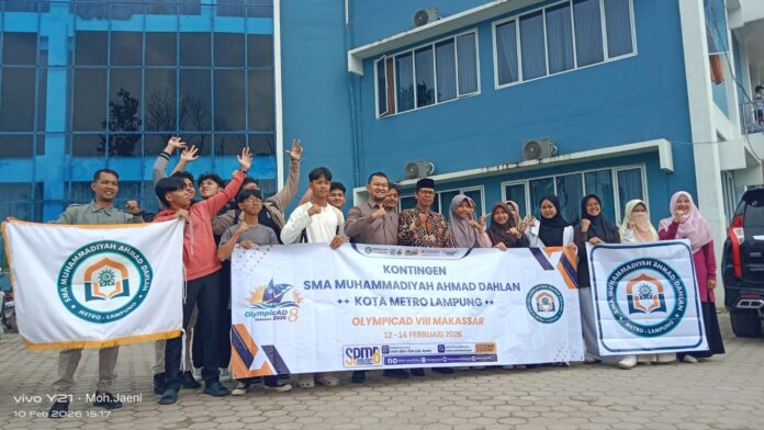 Metro — Ketua Majelis Pendidikan Dasar, Menengah, dan Pendidikan Nonformal (Dikdasmen dan PNF) PDM Kota Metro secara resmi melepas kontingen SMA Muhammadiyah Ahmad Dahlan (SMA MuAD) Kota Metro, Lampung, yang akan mengikuti ajang OlympiCAD VIII di Makassar, Sulawesi Selatan, pada 12–14 Februari 2026, pelepasan kontingen yang berlangsung di Aula SMA MuAD Metro, Selasa,10/2/2026.