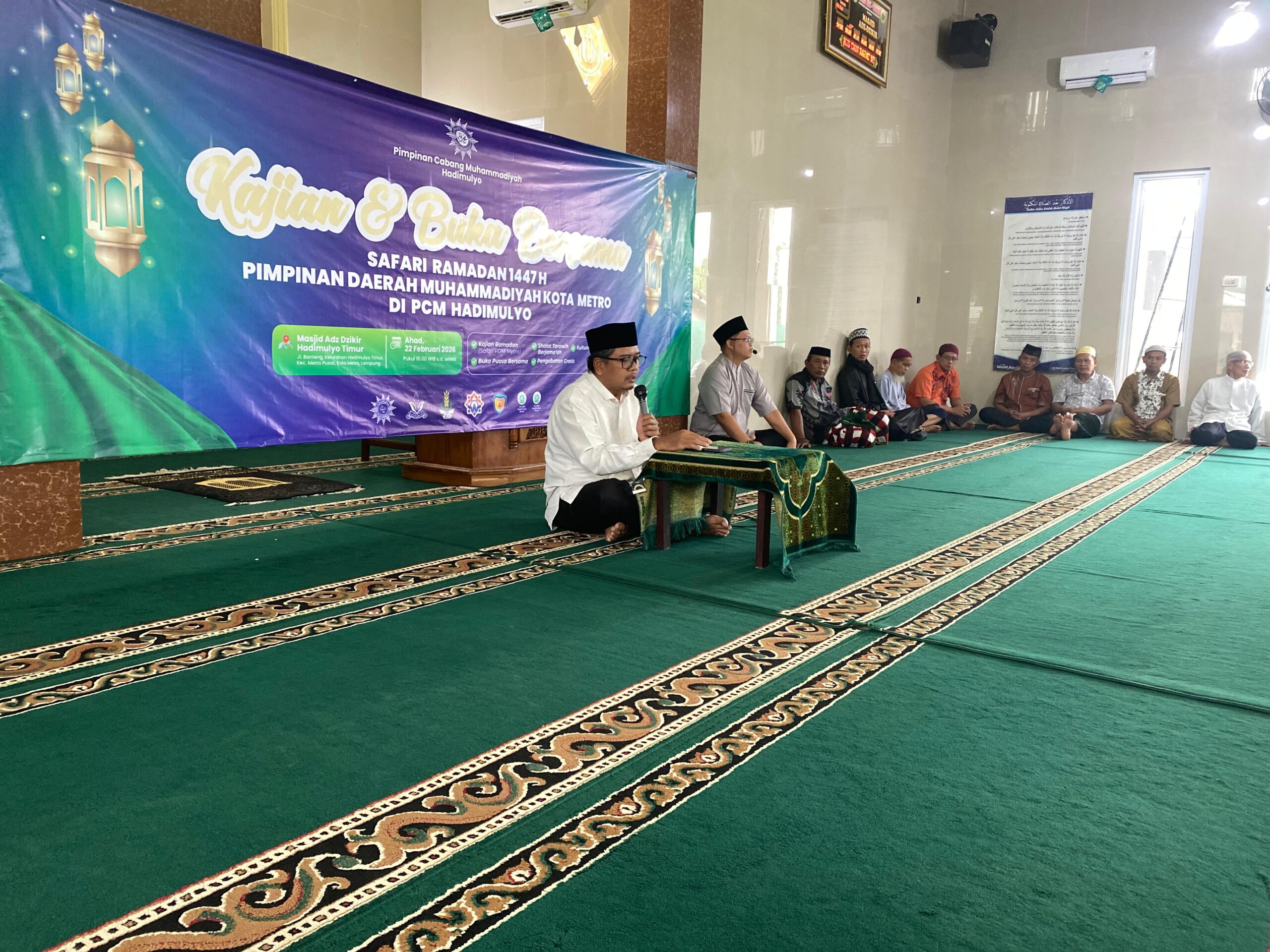 Metro – Safari Ramadan 1447 H yang digelar Pimpinan Daerah Muhammadiyah (PDM) Kota Metro di Masjid Adz-Dzikir Hadimulyo, yang berlangsung penuh semangat konsolidasi dan penguatan gerakan dakwah berkemajuan, dihadiri Pleno PDM Kota Metro Pleno Pimpinan Cabang Muhammadiyah (PCM) Hadimulyo, serta tamu undangan dan para jamaah masjid setempat pada Ahad, 22/2/2026.