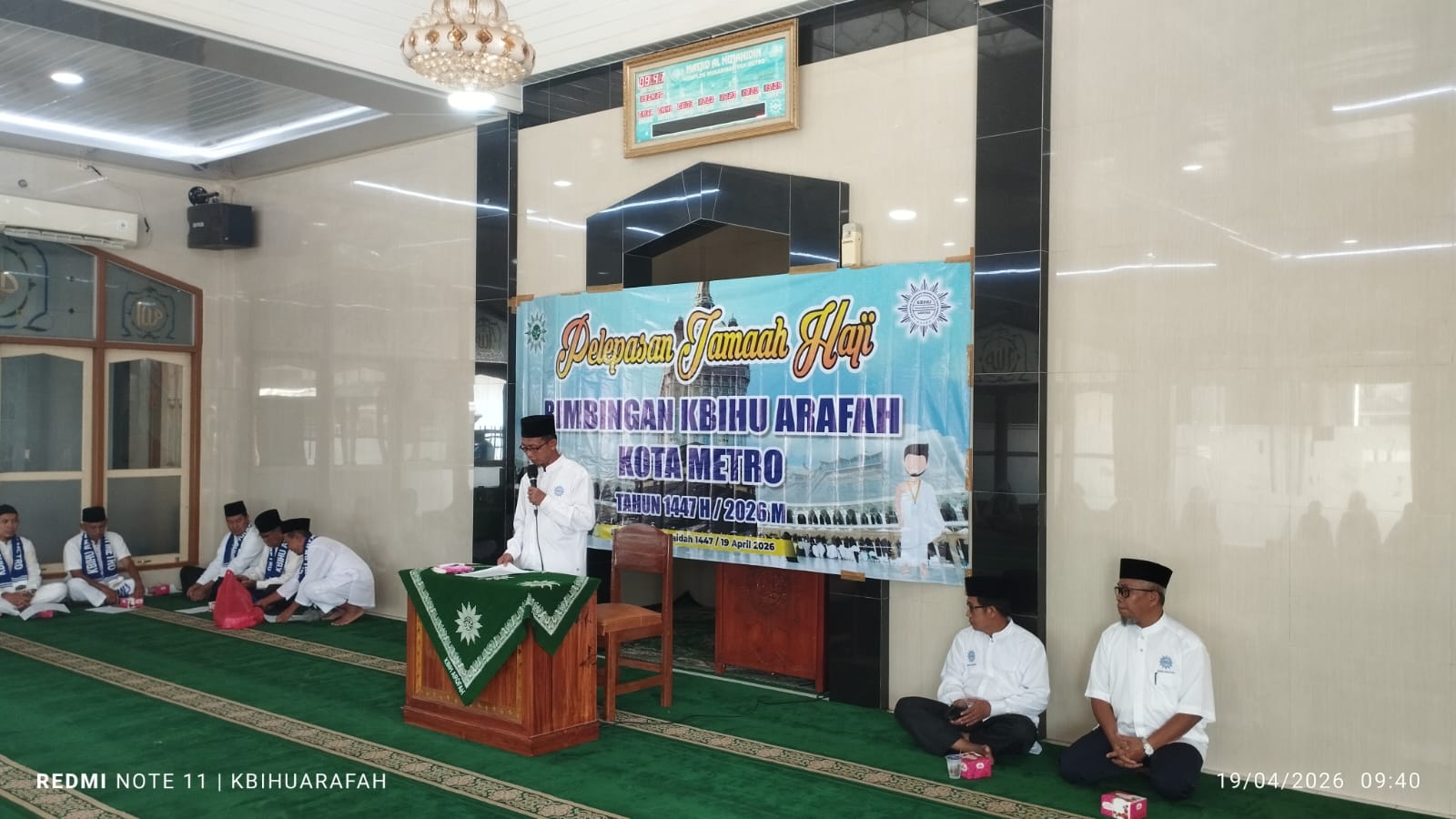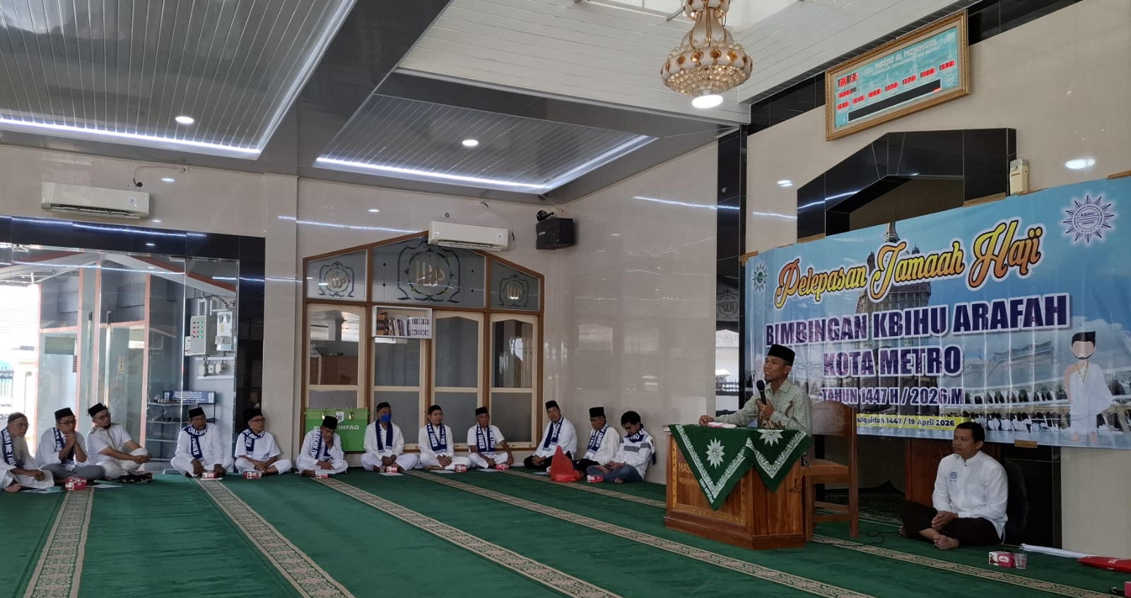 METRO — Kelompok Bimbingan Ibadah Haji dan Umroh (KBIHU) Arafah Muhammadiyah Kota Metro, secara resmi melepas sebanyak 40 jamaah manasik haji, yang secara simbolis dilaksanakan oleh Ketua Pimpinan Daerah Muhammadiyah (PDM) Kota Metro dan berlangsung di Masjid Mujahidin Kompleks Muhammadiyah Kota Metro, pada Ahad,19/4/2026.