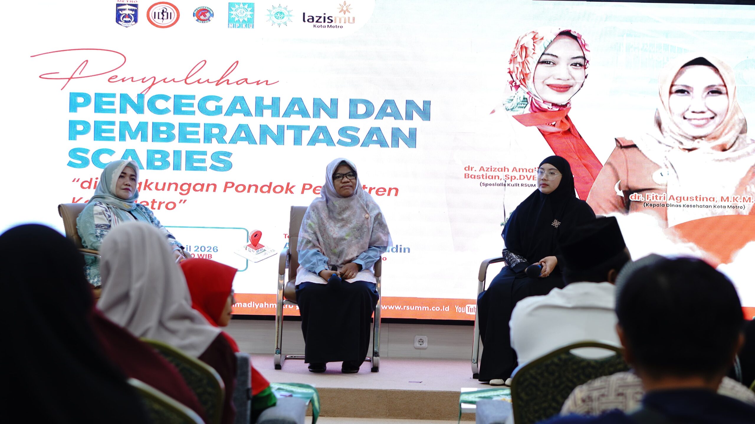 METRO – Upaya meningkatkan standar kesehatan di lingkungan pendidikan berbasis asrama terus digalakkan. Majelis Pembinaan Kesehatan Umum (MPKU) Pimpinan Daerah Muhammadiyah (PDM) Kota Metro menggelar penyuluhan pencegahan dan pemberantasan penyakit scabies (gatal-gatal menular) di Aula AR. Fachruddin RSU Muhammadiyah Metro, Sabtu, 25/4/2026.