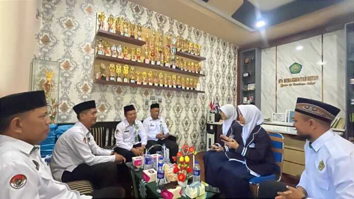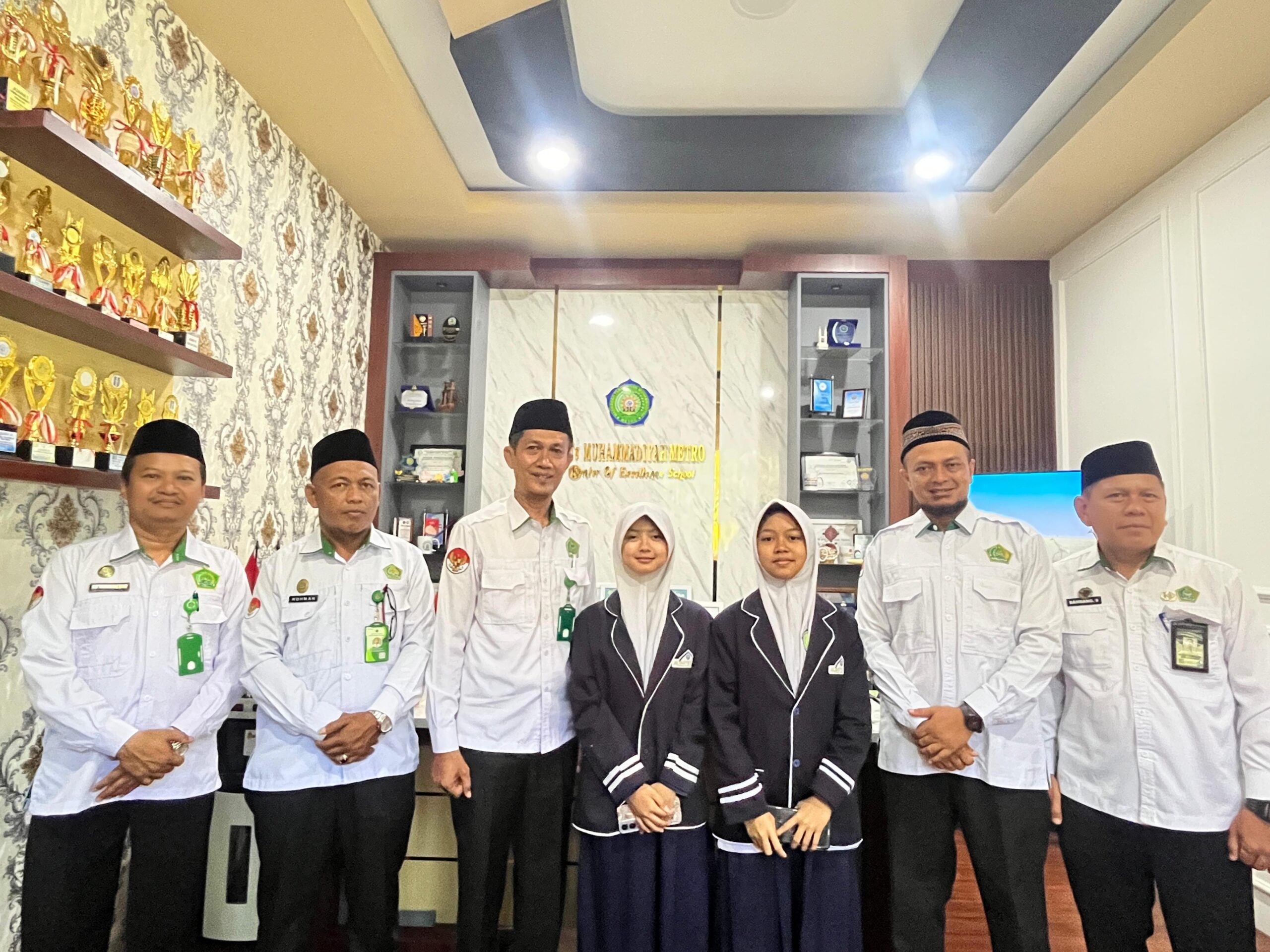 METRO — Jurnalis pelajar Madrasah Tsanawiyah (MTs) Muhammadiyah Metro berhasil melakukan wawancara langsung (doorstop interview) dengan Kepala Kementerian Agama (Kemenag) Kota Metro saat meninjau pelaksanaan Ujian Madrasah (UM) kelas IX, Senin, 27/4/2026.